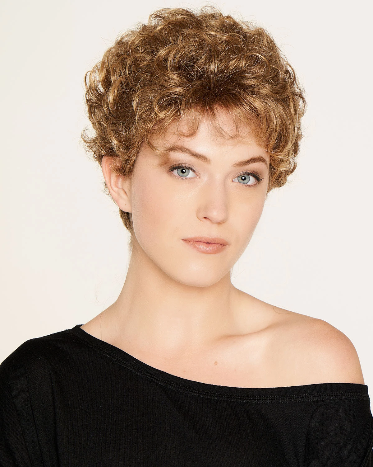 Offering lush fullness, the Allure wig immediately captures attention. The volume provided by the wig, the short curled bang and the tapered nape create a silhouette that is nothing short of glam. A wedge with thin wefting, thin open nape, open ear tabs.