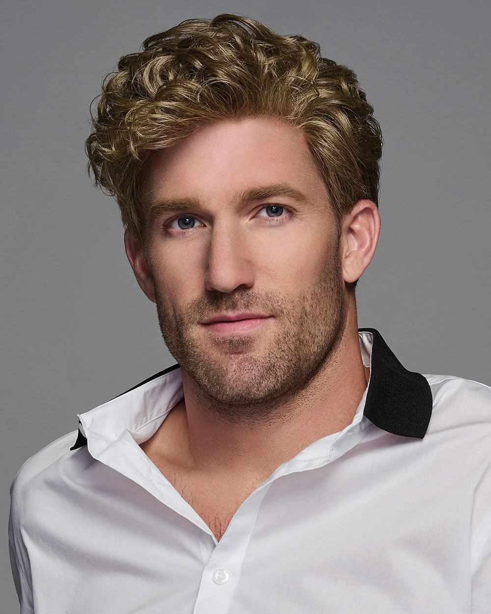 Get ready to be charmed by the soft, smooth curls of this charismatic cut. With shorter, natural waves at the sides and back, the look is boy-next-door adorable. Purposely designed longer lengths around the ears and at the nape are meant to be custom cut to suit his style. Heat-friendly synthetic hair is easily smoothed straight if desired.