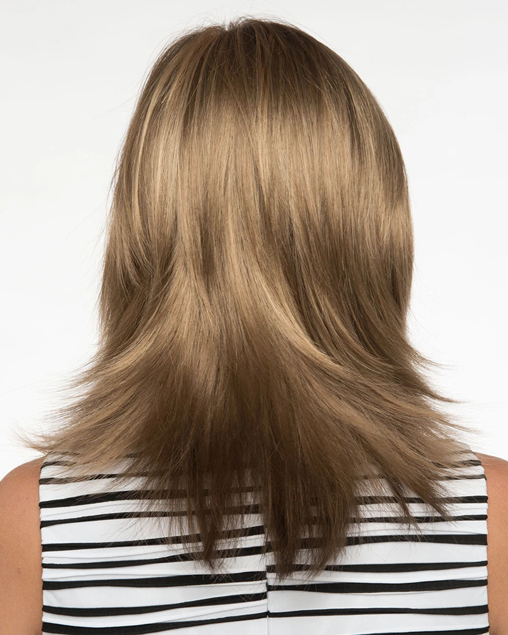 Girl next door meets modern fashion guru in this shoulder-length beauty by Envy. Featuring long, gentle layers, flared ends, and wispy, face-framing bangs, Gigi is sure to turn heads in neighborhood and nightclub, alike. The Mono Top construction allows you to wear this wig up or down, toward or away from your face, without revealing anything but impeccable style.