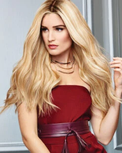 The Glamour and More Wig by Raquel Welch is our longest style ever, this sensual silhouette has just enough layering in the front to add softness and gentle movement while blending seamlessly with the more solid lengths in the back. Softly textured ends in the back allow for movement while creating the effect of a one-length look. 100% Remy human hairs unidirectional cuticles means hair tangling is minimal and the French Drawn lace front monofilament top offers a wealth of styling choices.