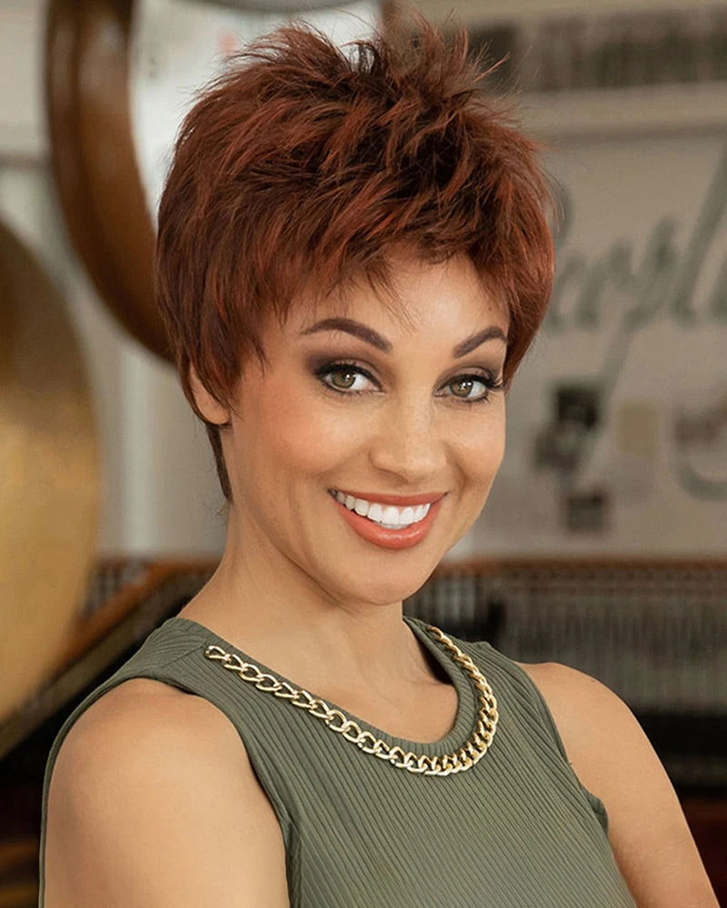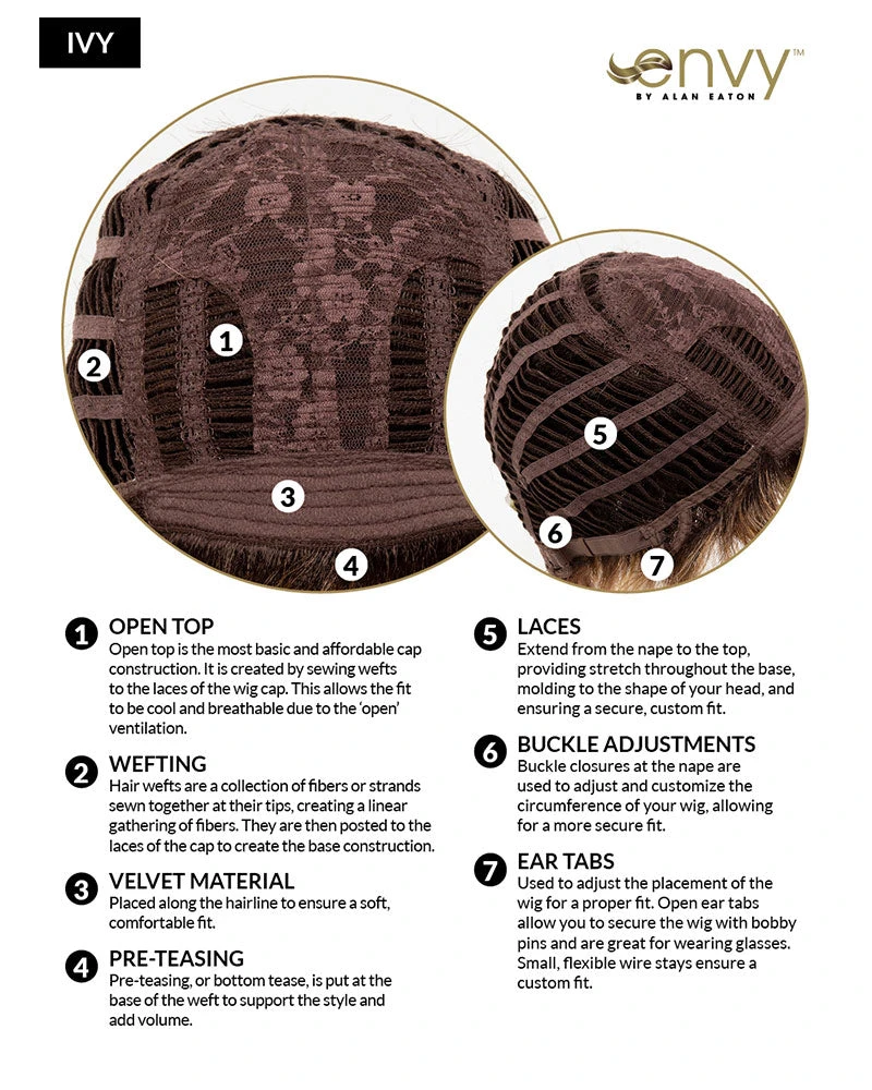 The eyes have it with Ivy. Short, defined layers combine forces for a look that is both charming and elegant. Coax the tresses up for some fun or tame them down for a more business-like look. Either way, you will be happy and comfortable thanks to the Open Top construction with its gossamer-light cap.