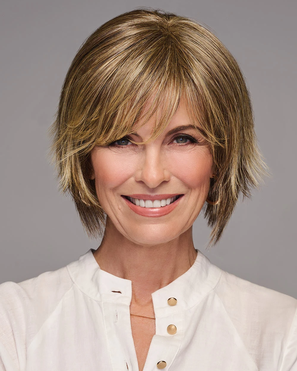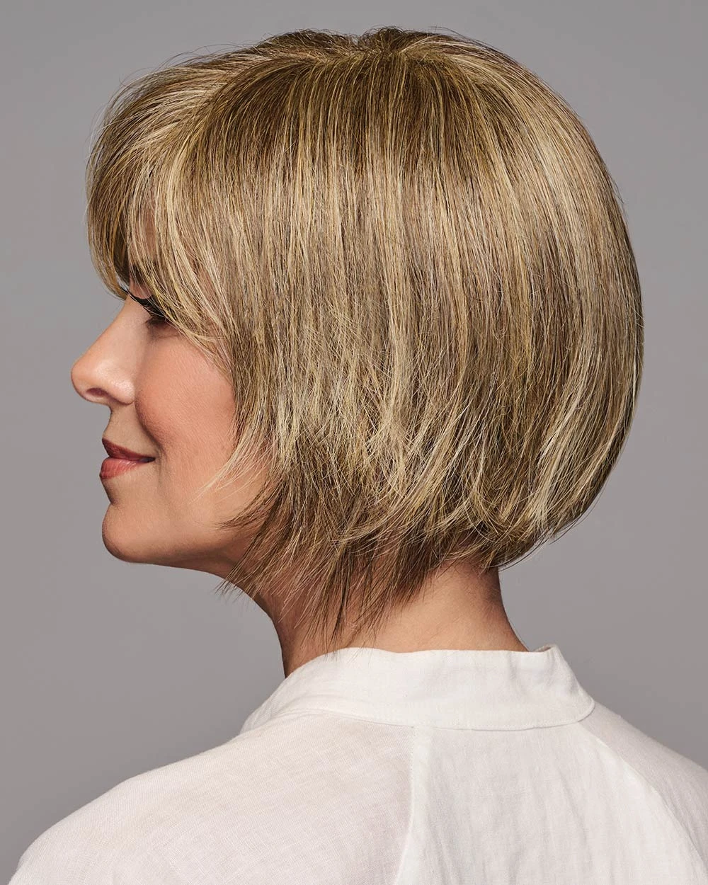 A modern, edgy bob with a trendy, flipped-up back. Wear smoothed down, finger-styled with a piecey texture, or pump up the volume using styling products. The disconnected, longer front and shattered, stacked back stay straight and on point, even in humidity.